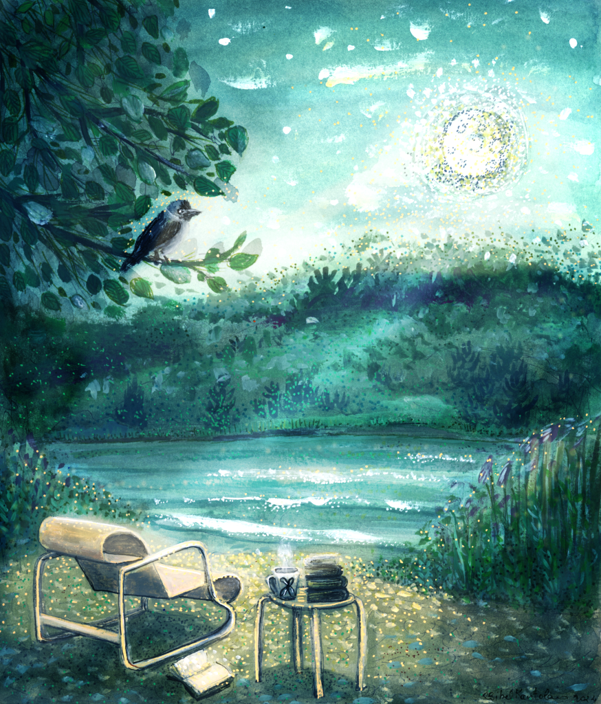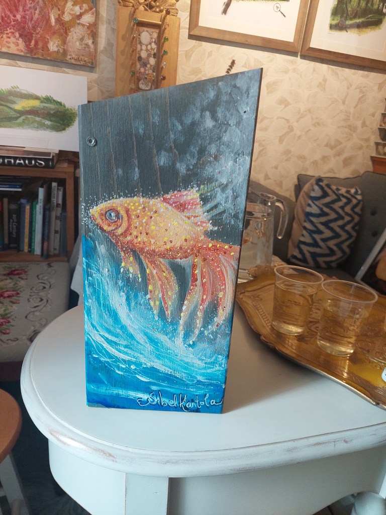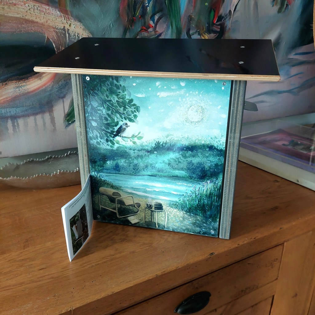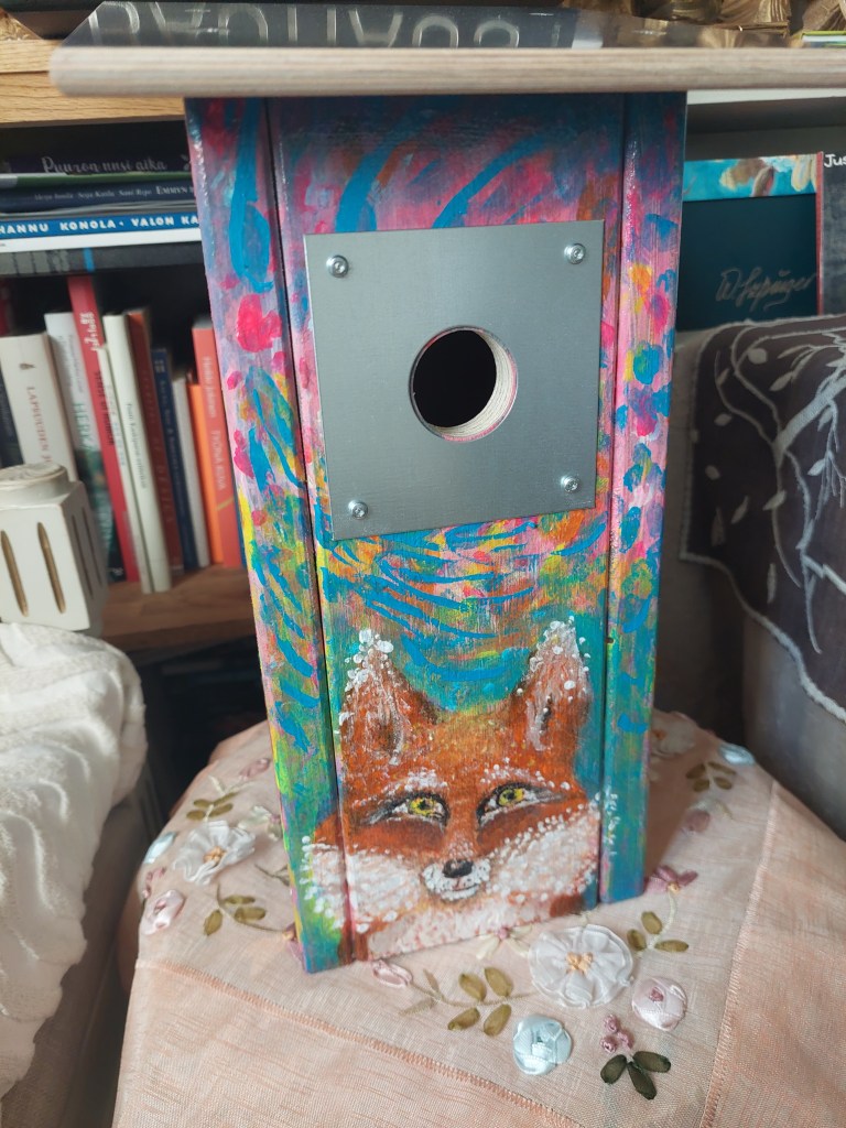 City of Kaarina with these municipalities like Paimio, Lieto and Sauvo has ordered a birdhouse that will reflect them, and the receiver Kari Häkämies, who was becoming retired from his duty will be receiving this gift. I used the bird jackdaw that represents Sauvo. Then we have Alvar Aalto’s Paimio char. Lieto’s logo is on the coffee mug. And the sea view is reflection view of the Kaarina city. The illustration had to look like a detective book cover such as the Kari Häkämies as a writer of several detective stories.